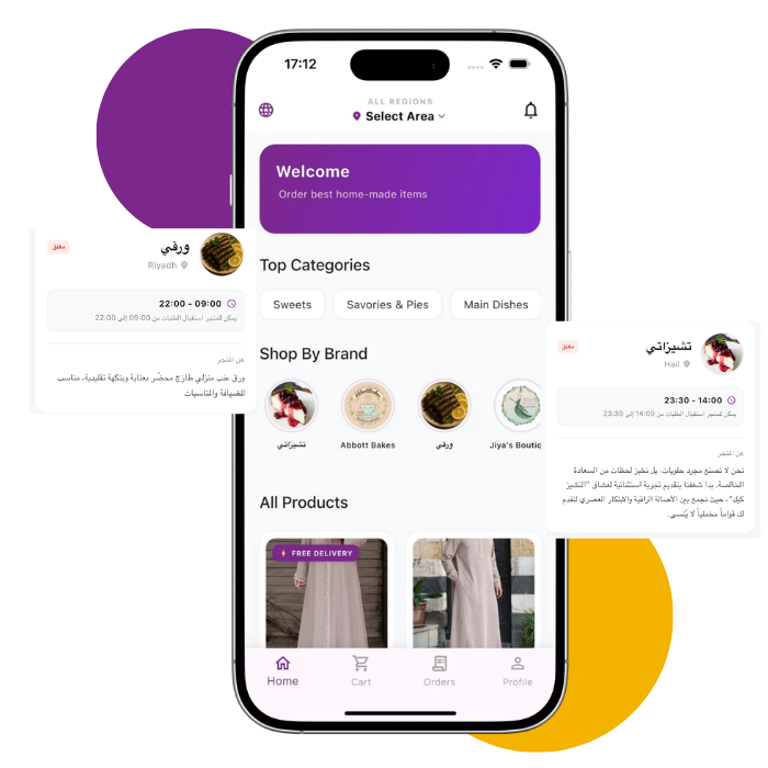 Start your home-based business and reach more customers easily through Manaa. Manage orders, products, and deliveries from one simple app.